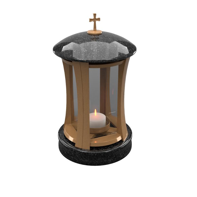 Стильная и надёжная лампада для памятника, выполненная из натурального гранита с декоративной вставкой цвета бронза. Основа и крышка из гранита могут быть изготовлены из камня более чем с 20 различных месторождений — от классического чёрного до эксклюзивных цветных гранитов.